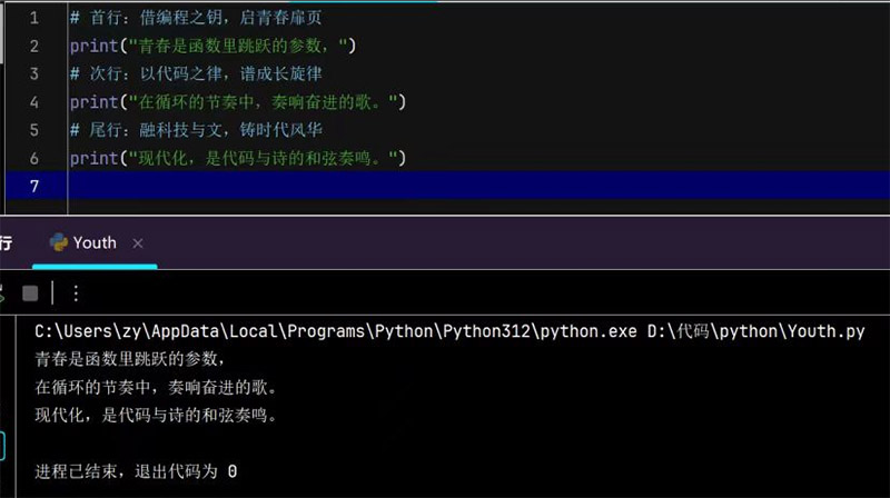 實踐關(guān):技術(shù)賦能,踐行科技向善理念 “代碼初體驗工坊”環(huán)節(jié)聚焦“科技為現(xiàn)代化筑基”,同學(xué)們通過Scratch圖形化編程制作“垃圾分類小助手”小游戲,在解決環(huán)保問題的實踐中,體會信息技術(shù)對綠色現(xiàn)代化的推動作用。“代碼詩歌朗誦會”則別開生面,同學(xué)們用Python、Java、C++等多種編程語言,將“青春”寫成三行詩,讓代碼與文學(xué)碰撞出火花,呼應(yīng)現(xiàn)代化建設(shè)中“硬實力”與“軟文化”的協(xié)同發(fā)展。