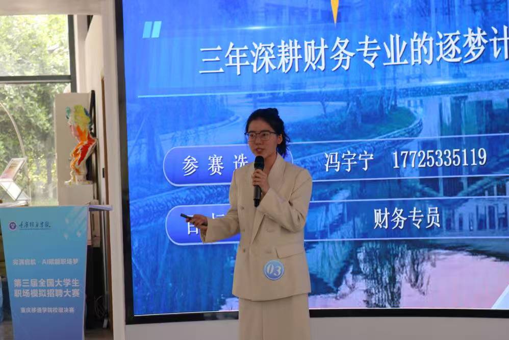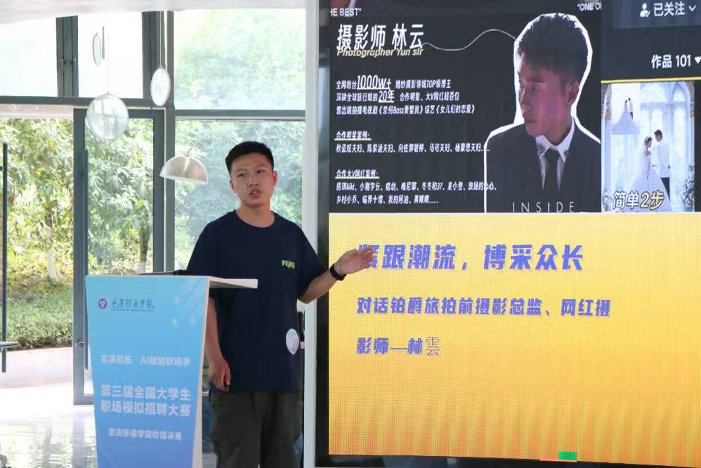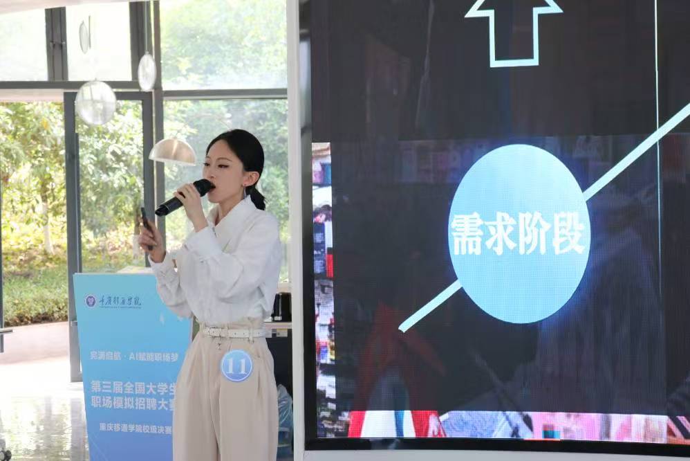 在模擬真實(shí)求職環(huán)境的答辯環(huán)節(jié)中,選手們懷揣不同職業(yè)夢(mèng)想:從中國(guó)故事傳播者到寵物產(chǎn)品開發(fā)者,從科幻領(lǐng)域探索者到基層教育踐行者。他們以“未來(lái)職場(chǎng)人”身份,通過(guò)簡(jiǎn)歷展示、競(jìng)聘陳述及職業(yè)藍(lán)圖設(shè)計(jì),展現(xiàn)對(duì)行業(yè)趨勢(shì)的敏銳洞察。作為“當(dāng)前求職者”,他們結(jié)合企業(yè)要求,從專業(yè)技能、項(xiàng)目經(jīng)驗(yàn)及崗位匹配度進(jìn)行自我推銷,并提出創(chuàng)新解決方案。全過(guò)程凸顯參賽選手們的綜合素質(zhì)與清晰職業(yè)規(guī)劃。