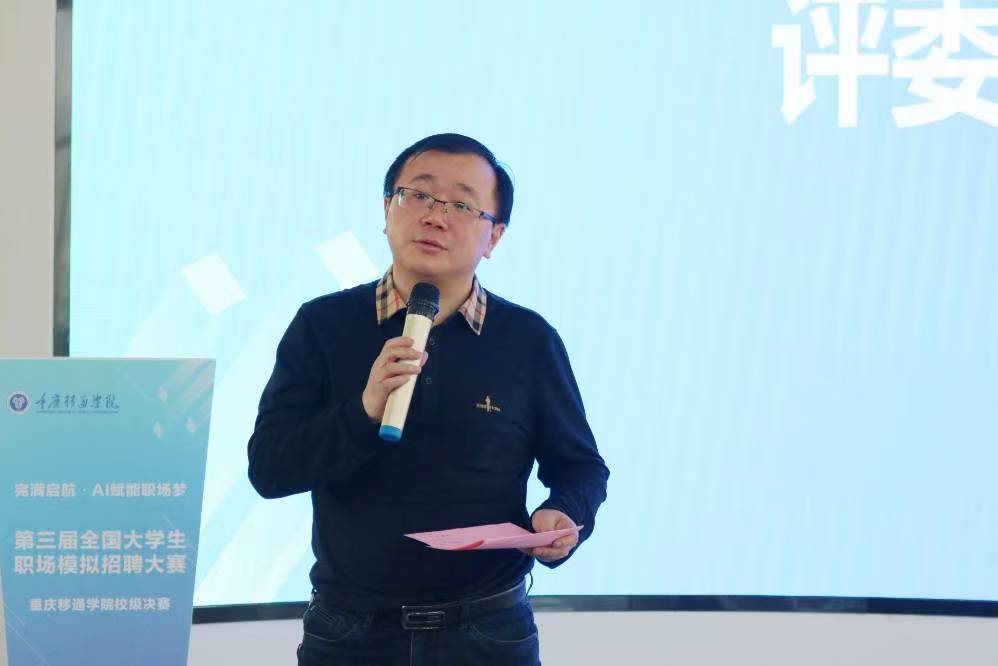 為深入貫徹黨中央、國(guó)務(wù)院關(guān)于促進(jìn)高校畢業(yè)生就業(yè)的決策部署,切實(shí)提升大學(xué)生職業(yè)素養(yǎng)和就業(yè)競(jìng)爭(zhēng)力,推動(dòng)我校畢業(yè)生高質(zhì)量充分就業(yè)。由重慶移通學(xué)院主辦,就業(yè)創(chuàng)業(yè)指導(dǎo)與服務(wù)中心承辦的“完滿啟航·AI賦能職場(chǎng)夢(mèng)”第三屆全國(guó)大學(xué)生職場(chǎng)模擬招聘大賽重慶移通學(xué)院合川校區(qū)校級(jí)決賽于4月16日14:30在北校區(qū)UFO拉開帷幕。重慶文理學(xué)院電子信息工程學(xué)院黨委副書記周道林、重慶移通學(xué)院就業(yè)創(chuàng)業(yè)指導(dǎo)與服務(wù)中心主任佘桂隆、學(xué)生處宿舍管理中心副主任張旭、匯江書院綜合辦公室主任岳振遠(yuǎn)、數(shù)字經(jīng)濟(jì)與信息管理學(xué)院學(xué)生工作辦公室主任廖陽(yáng)、教務(wù)處孫亞棟擔(dān)任本次比賽評(píng)委,重慶移通學(xué)院副校長(zhǎng)陳仲華出席本次比賽。