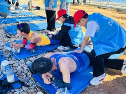 志愿者深入賽事終點康復(fù)區(qū),憑借運動康復(fù)、急救等專業(yè)知識,為完賽選手開展標準化服務(wù),從肌肉拉伸、筋膜放松到疲勞干預(yù),全程守護選手健康,將勞動教育融入體育賽事保障,生動詮釋奉獻精神。