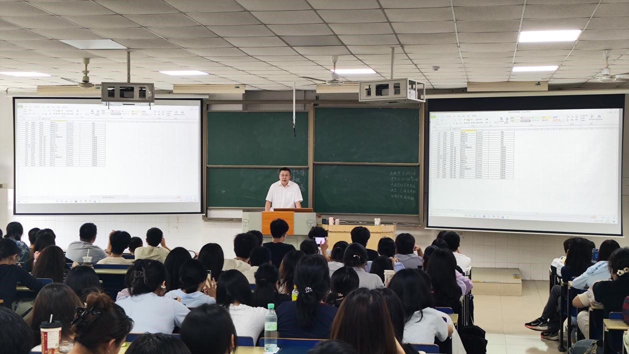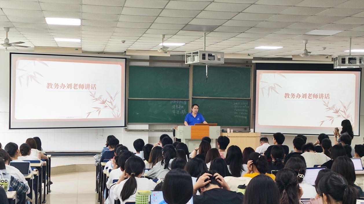 劉軼就期末考試相關事項進行強調,提醒同學們提前做好考試安排,嚴格遵守考場紀律,攜帶本人身份證件,提前到到考場,并提示轉專業(yè)學生特別注意考試安排差異。他著重介紹了考試違規(guī)的情形和相應后果,以及申請緩考的流程。