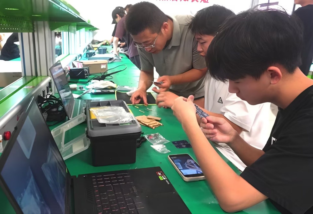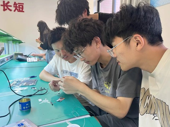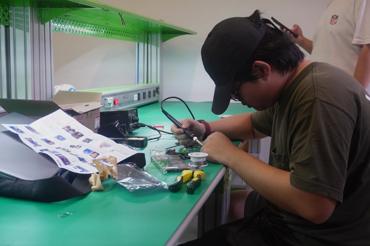 圖為參賽成員進行焊接電路板(供圖 閔昊)