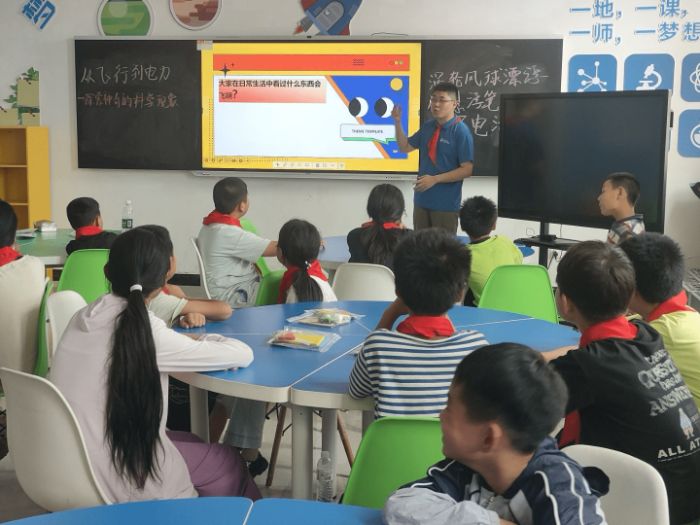近日,南京工程學(xué)院計算機工程學(xué)院“指尖智薈”科技志愿服務(wù)團赴宿遷泗洪太平實驗學(xué)校開展為期3天的科普實踐活動。活動中,團隊成員為學(xué)生們展示了“水中煙花”“泡泡龍”“彩虹雨”“水果電池”等近15個富有趣味性的科學(xué)小實驗和科學(xué)理論宣講課程,并且聯(lián)系實際,用淺顯易懂的方式幫助學(xué)生們了解和掌握實驗背后蘊含的力學(xué)、AI等科學(xué)知識。成員們也積極指導(dǎo)學(xué)生們實際動手操作體驗科學(xué)小實驗,引導(dǎo)學(xué)生在“做”中學(xué),充分感受科學(xué)魅力,激發(fā)學(xué)生熱愛科學(xué)、參與科普的熱情和興趣。