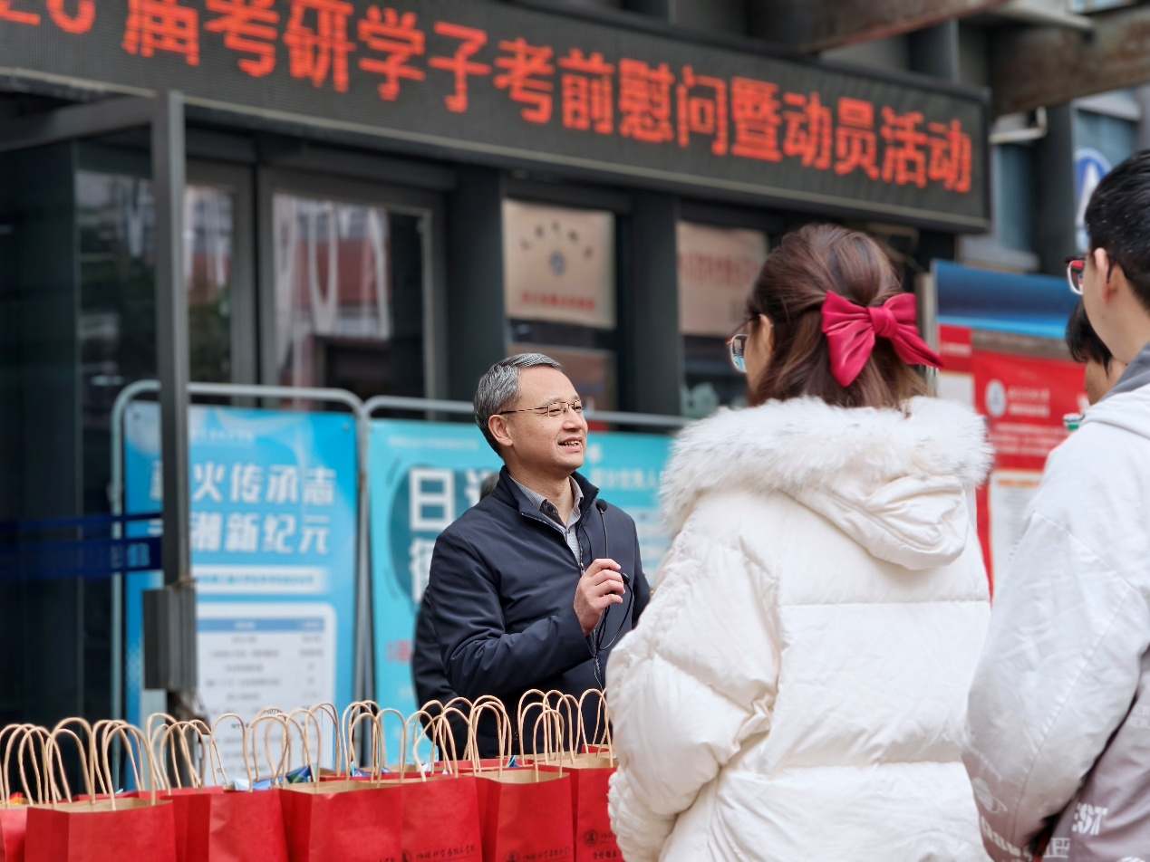 學校黨委常委、組織部部長、地科院黨委書記易聯(lián)樹為考研學子加油鼓勁。他充分肯定同學們長期以來的拼搏付出,叮囑大家把握考前最后十天的寶貴時間,調(diào)整身心狀態(tài),以飽滿的精神面貌和最佳的應考狀態(tài)迎接考驗。“考研既是知識儲備的全面檢驗,更是心理素質(zhì)的一場較量。”并勉勵廣大學生“在考場上‘提筆從容自信,合筆如愿以償’,借馬年將至的吉慶兆頭,祝每一位地科學子馬到成功、一戰(zhàn)成碩!”